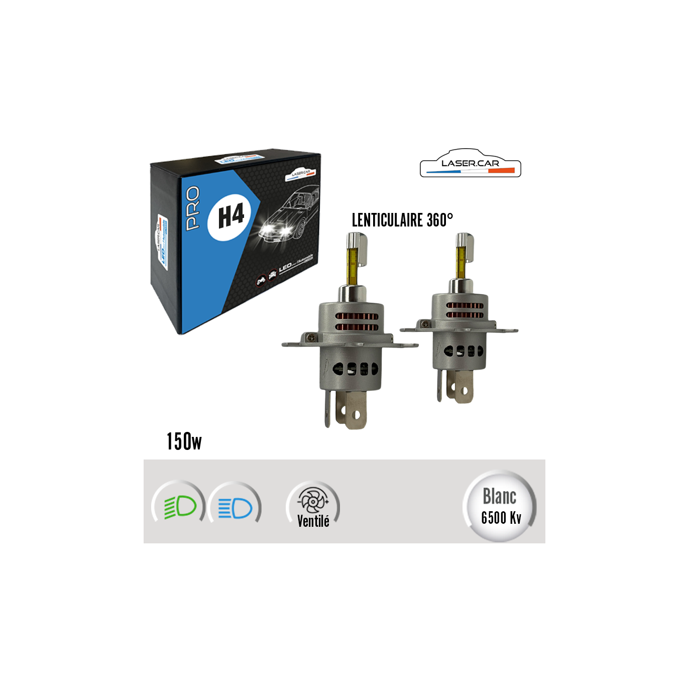Référence : H4 LED- Gamme PRO pour feux lenticulaires ( loupe)