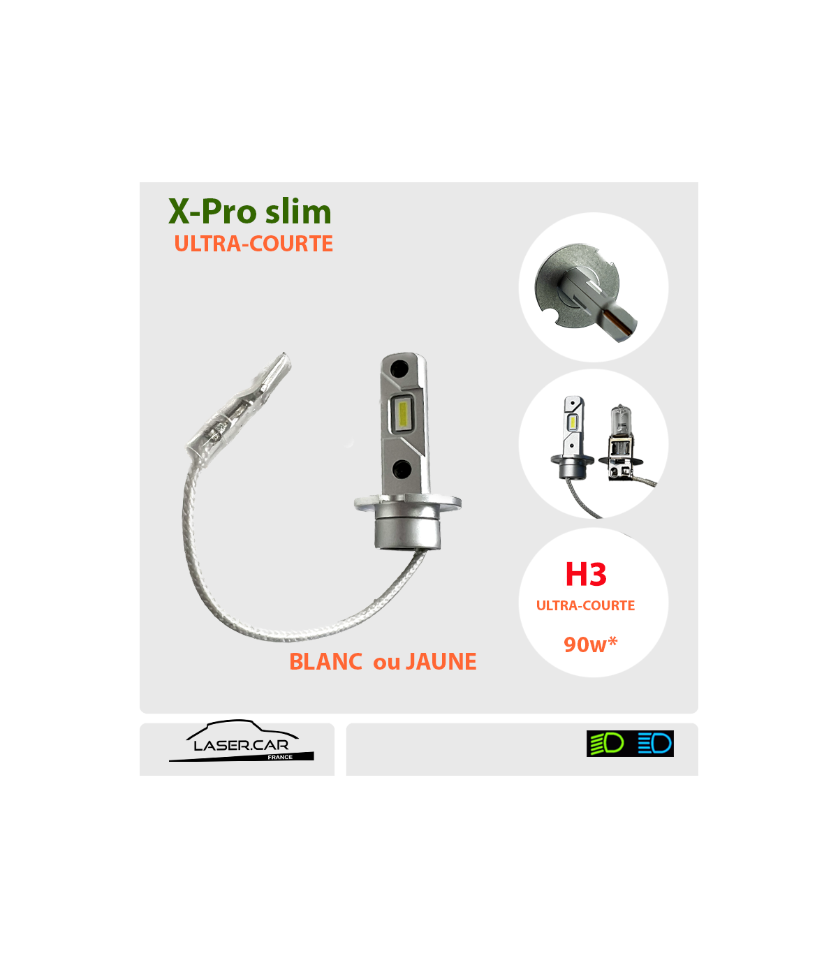 Pour mémoire, Le flux lumineux se mesure en LUMEN (lm), une H1 traditionnelle halogène 55 w, émet environ.15 Lumen/w, en consommant environ 4 ampères par Ampoule. Cette ampoule LED H3-XPRO SLIM a un flux lumineux allant jusqu'à 90 lm/w.