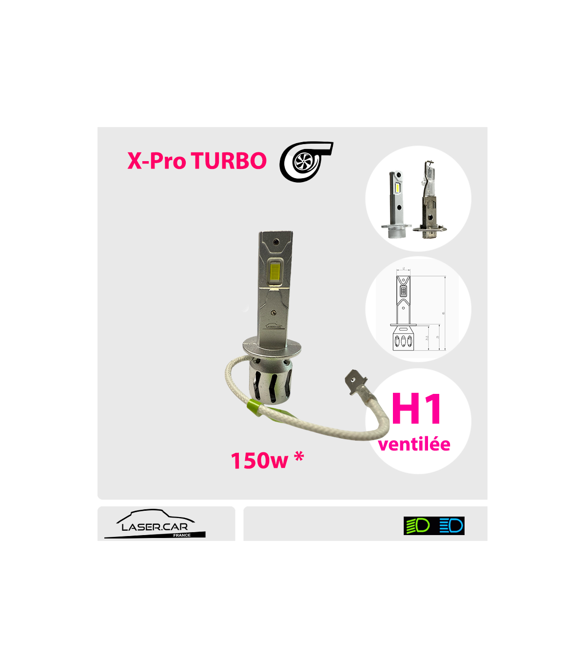 Cette ampoule LED H1_x-PRO TURBO. a un flux lumineux allant jusqu'à 100 lm/w. Elle est dotée d'un culot arrière de seulement 22 mm , ce qui lui permet d'être insérée dans la majorité des optiques, sans dépasser du phare.