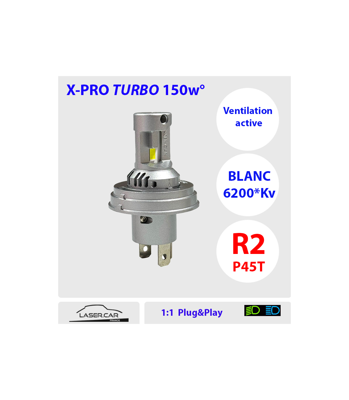 • R2 DUPLO P45T LED- Gamme PRO  TWIN TURBO 150w* blanc pur 6200°Kv