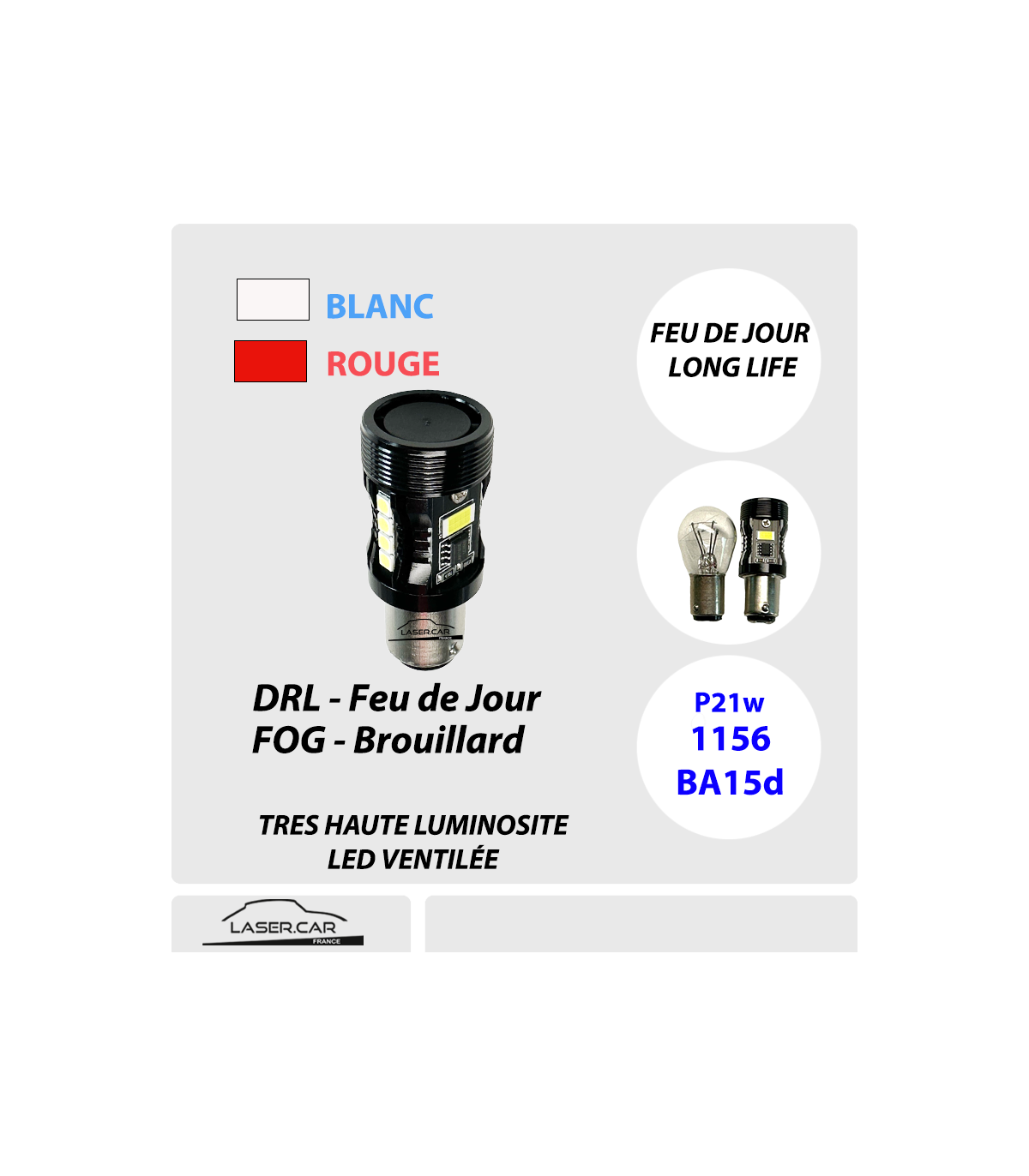 Une ampoule LED BA15s, 1156 spéciale pour FOG ( Brouillard) et DRL ( Feux de Jour Permanents) dont la luminosité est parfaitement maitrisée, afin de ne pas aveugler les véhicules suiveurs. .