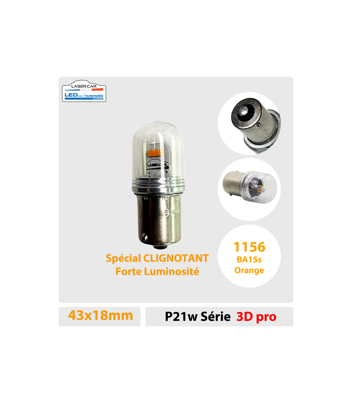 Le LED BA15s, 1156, de couleur orange est généralement utilisé pour les CLIGNOTANTS, Pour parfaire votre système clignotant LED, utilisez la centrale Clignotant LED Laser Car en vente sur ce site