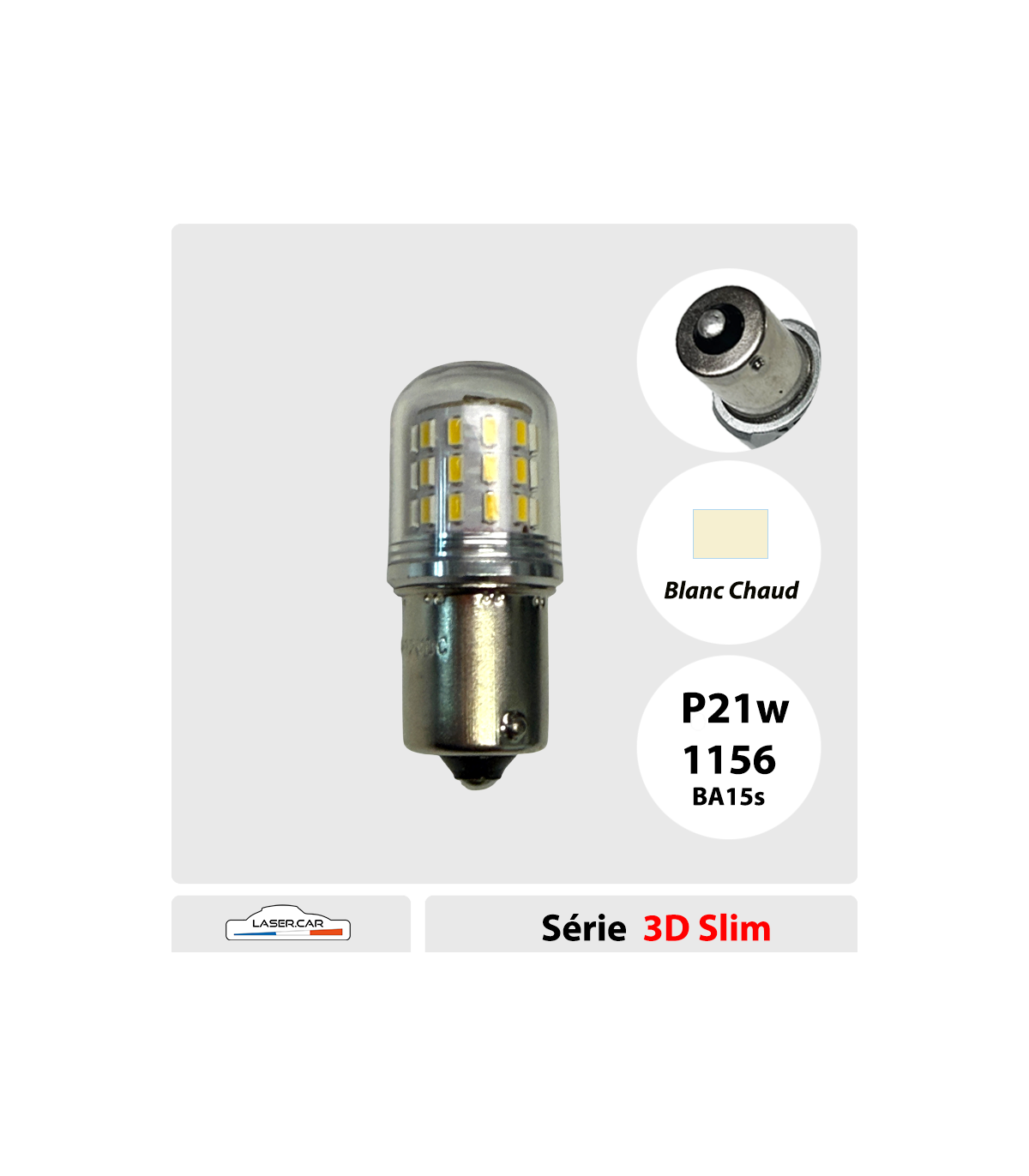 La P21w également nommée, BA15s 21w ou 1156 selon les époques et les pays, Cette ampoule LED est "PLUG & PLAY, de la série 3D LASER CAR.