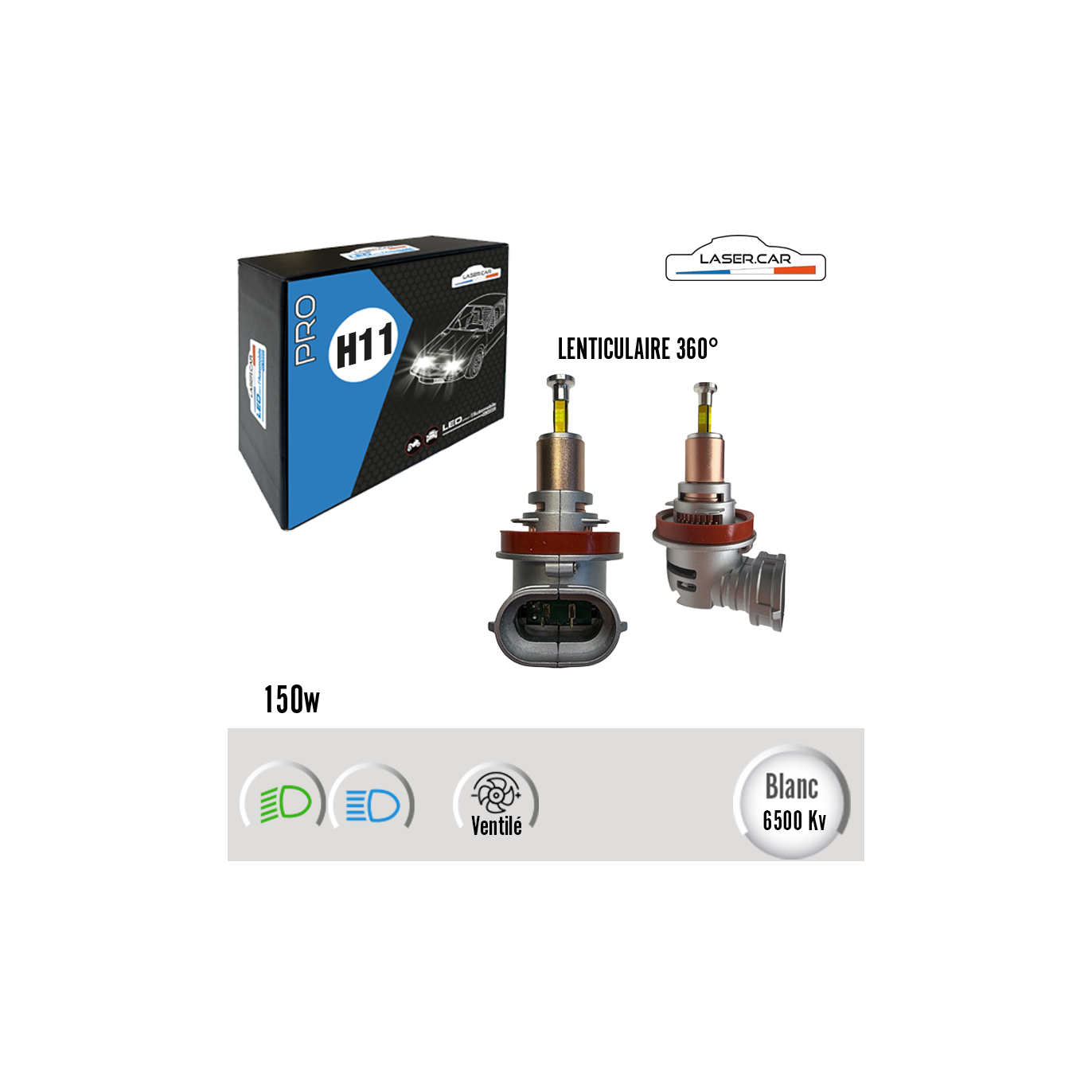 Référence : H11 H9 LED- Gamme PRO pour feux lenticulaires ( loupe)