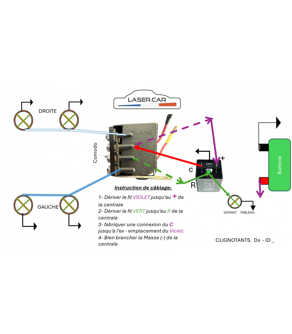 1/ Enlever le fil violet du Commodo et le brancher au + de la LC4b12
