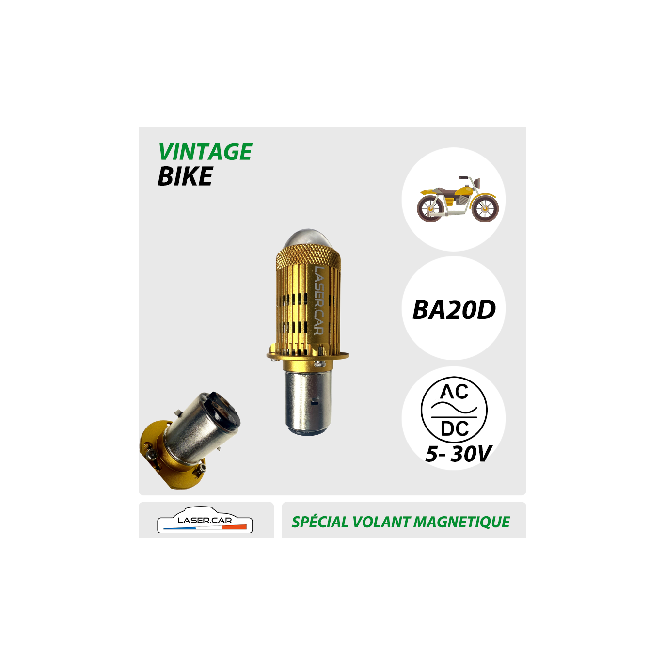 BA20d S2, H6 LED- Spéciale Moto ancienne à volant magnétique