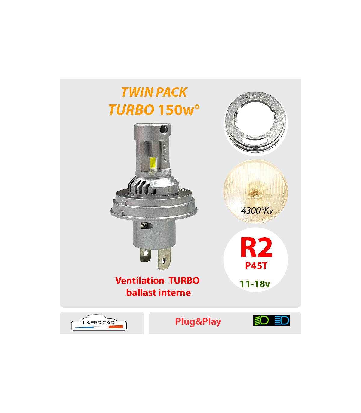• Ce kit d’Ampoules LED remplacera avantageusement toutes les R2 P45T  du marché de l’automobile CLASSIQUE 12V